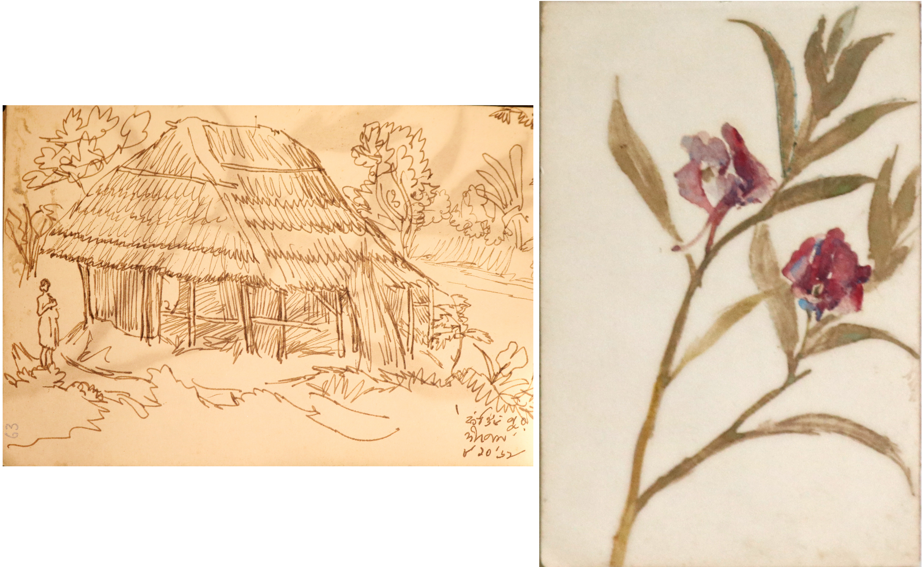 Paintings on both sides of the paper
